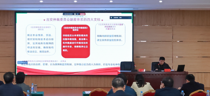 4月1日,吉安仲裁委员会成功举办第三届仲裁员任职培训班。本次培训旨在深入学习贯彻新修订的《中华人民共和国仲裁法》,提升仲裁员专业素养和职业操守,推动新一届仲裁员更快更好履行职责。市内外368名仲裁员线上线下同步参加培训。